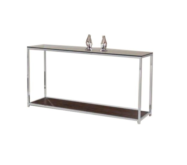 Aparador com estrutura em alumínio polido, com prateleira em madeira. Dimensões: Largura: 1,40 m Altura: 0,78 cm Profundidade: 0,40 cm