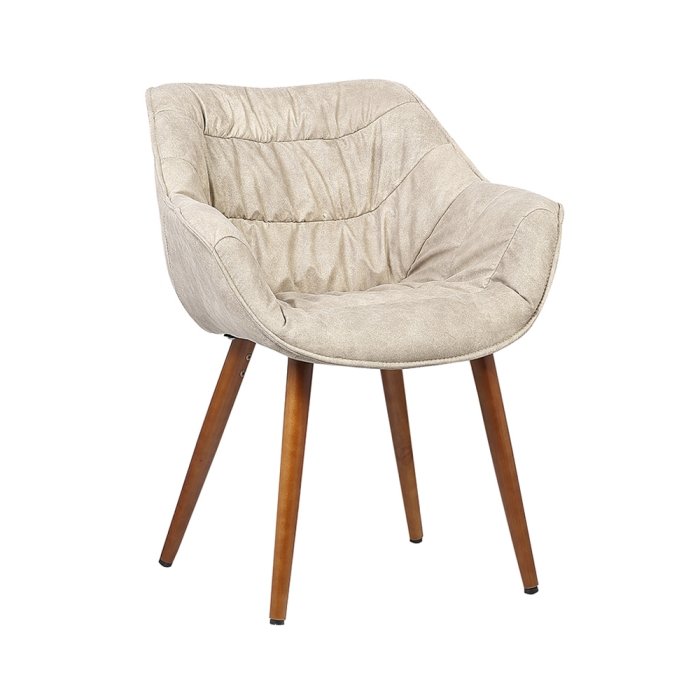 Cadeira com assento estofado em PU ou tecido suede.