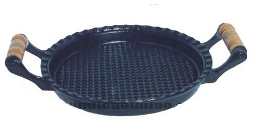 Chapa Bifeira Redonda Frisada com Alças de Madeira 25x25cm