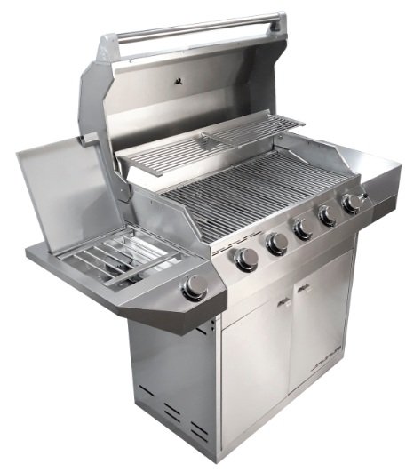 Churrasqueira premium fabricada em aço inox 304, com 5 queimadores a gás GLP ou GN, com armário, fogão lateral e abas laterais de apoio. No armário, você pode guardar o botijão de 13kg e acessórios para o churrasco. Ainda conta com 4 rodízios para facilitar os deslocamentos do dia a dia. Potência total de 55.000 BTU’s, na medida para grelhar com perfeição e assar churrascos deliciosos.