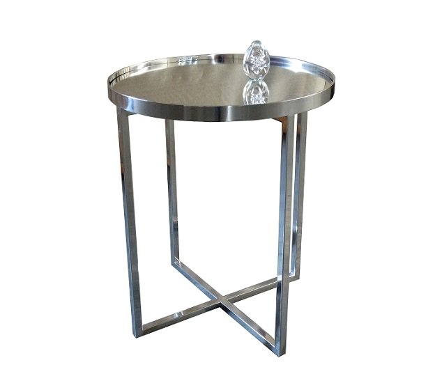 Estrutura em alumínio polido, tampo espelho ou vidro pintado. Dimensões: D 0,60 x A 0,60
