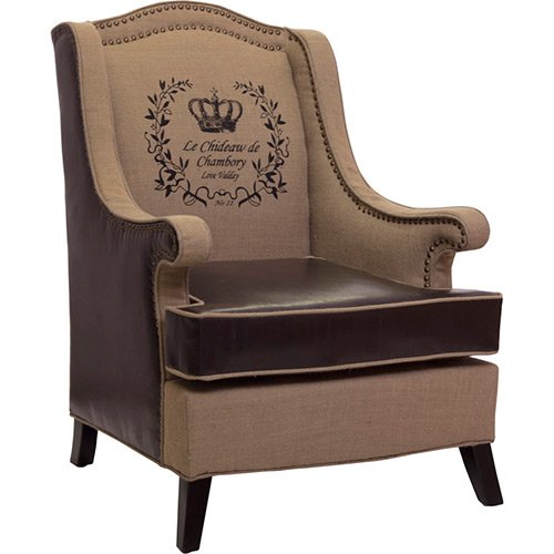 Pés e estrutura de madeira.Espuma anti-fogo.Revestida em juta e couríssimo. Dimensões: Altura:1,00 m Largura:0,74 cm Profundidade:78,5 cm
