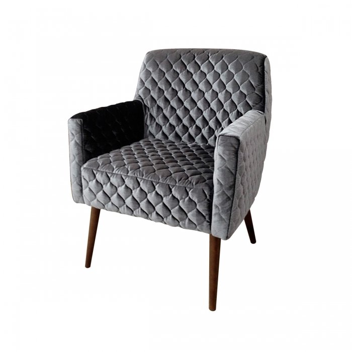 Poltrona estofada com matelassê gotas em todas as partes, pé palito em madeira. Dimensões: Altura:0,82 cm Largura:0,67 cm Profundidade:0,66 cm