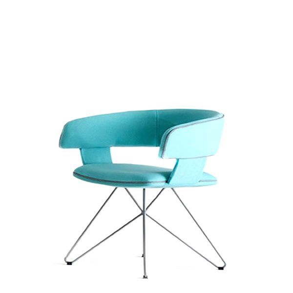 Poltrona estofada com detalhes em debrum com base butterfly em aço carbono pintado. Dimensões: Altura:0,84 cm Largura:0,72 cm Profundidade:0,63 cm
