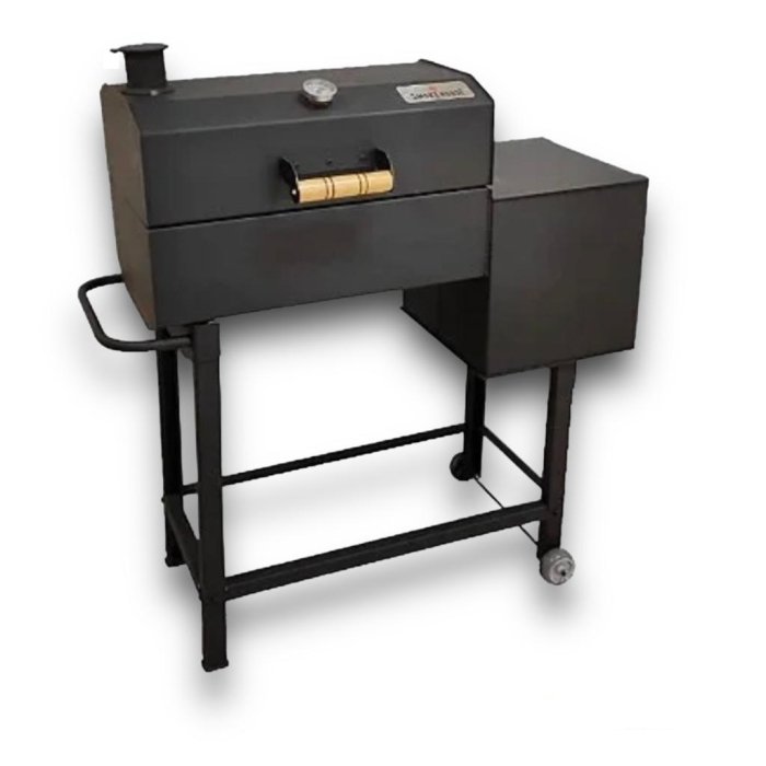 Smoke House Pit Seguindo o foco na missão de defumar o mundo, trazemos para você a nova linha residencial de defumadores, “Smoke House”, projetada e desenhada com o objetivo de deixar a linha mais acessível, sem perder o design característico dos atuais modelos. Em parceria com o fera do mundo do churrasco, Fagner “GG Brasa”, deixamos dois modelos disponíveis! Esse PIT pintado com tinta de alta temperatura preta, contém uma grelha, é versátil, e o melhor ainda é que funciona também como churrasqueira. Características: Uso: Residencial; Espessura Chapa: 1,5mm, garantindo a estabilidade necessária; Chaminé: Sistema de abertura easy flow; Puxador: Em madeira; Grelha: Um nível de grelha disponível (sai de fábrica com 01 grelha); Firebox: Lateral; Chapas Defletoras: Gullwing que favorecem o fluxo de fumaça e o escoamento da gordura; Pintura: Preta fosca; Restrições/Riscos: Cuidado ao manejar o produto após atingir alta temperatura; Durabilidade: Indeterminada Dimensões: Medidas do Produto em MM: Comprimento: 1039 Largura: 450 Altura: 1086 Grelha: 290 x 530 Peso: 38Kg